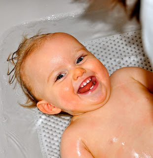 When we got home we went to play outside. We’ve been taking walks in the stroller a lot lately since the weather has been so nice, but Miss hasn’t really been out to run around in the yard yet this spring, so we just took some time to play in the front yard. She loved walking on the driveway and looking at all the interesting things to see. It took her a while to get used to the feel of the asphalt and the grass. The first few times she fell on her butt she didn’t want to touch the asphalt to stand back up. She also had to take some time to decide whether she liked the grass or not. She ultimately decided that both were okay, and she got good and dirty pulling out grass, digging a little dirt, picking up as many sticks as she could carry, and trying to catch ants. We took two walks and spent the entire afternoon outside until it was time to come in for dinner. The we had a bath and she conked out. It was such a wonderful day.