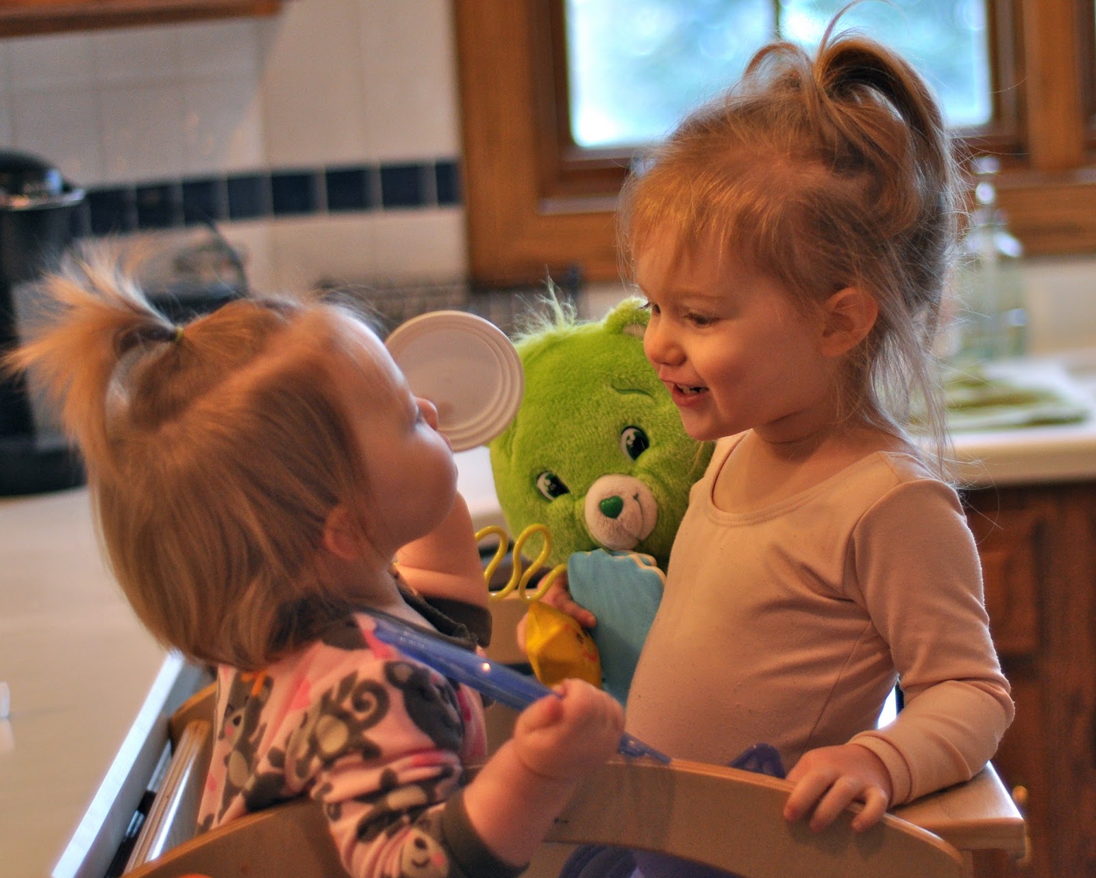 I pointed out to Miss a place on my belly where you could see Sis moving, and she was amazed. I told her “Baby Sissy is saying, ‘who’s out there poking me?'” and she got a big kick out of that. She kept asking, “What else is Baby Sissy saying?”
