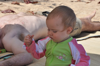The trip to Kaua’i was a fantastic family vacation that I have such wonderful memories of. Even with an almost-12-month-old, we were able to do so much and see so many beautiful things. We took a hike in the gorgeous Waimea Canyon (above). We went to lots of beaches, as shown yesterday, sometimes to sit and relax and soak up some rays, sometimes to take a long walk along a beautiful shore. We saw crabs and sea urchins and lots and lots of chickens (there are wild chickens all over the island, apparently let loose by a hurricane in the early 1990s). We ate at many different restaurants and got to experience plenty of local culture in the mornings at the coffee shop where we often had breakfast and coffee.