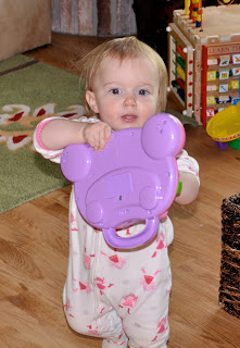 Finally, my last post gave me the kick in the rear I needed to just get the growth chart project done. I got out my practice canvas and experimented a little and then jumped in and painted the growth chart in two evenings. I used stencils to put Miss’s name at the top, but otherwise I did the rest freehand. It’s obviously very amateurish, but I am quite proud of it (the right side isn’t cut crookedly, it is kind of curled up a bit, not sure how to get it back to flat). It will match pretty well in her room and she will always know that her mom made it for her. Now on to the next projects: ruffly summer pants for Miss, crib sheets, a dust ruffle, a Boppy slipcover, and other nursery decor for Baby Girl, and eventually, another growth chart for her room too!