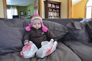 So we went back inside where she had tons of fun playing with all the stuff we had both been bundled up in.