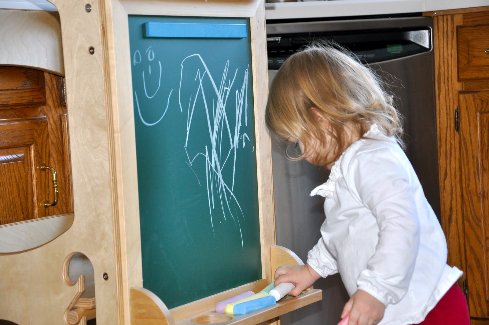 She had so much fun with it today. Daddy was ordered to draw with her. He was allowed to use the blue chalk, and only the blue chalk.
