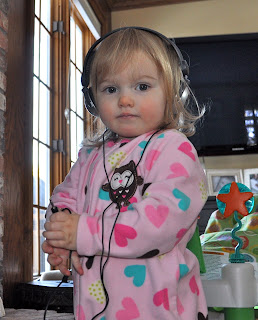 We are taking a trip to Arizona in a few weeks. It will be our first plane trip with two kids under two. In preparation for this, Miss got a new set of child-sized headphones so she can happily watch Yo Gabba Gabba on our DVD player without thoroughly annoying all the other passengers in ear-shot. She thought they were pretty cool.