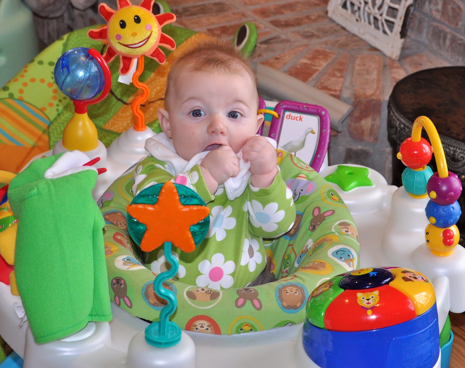 She loves being in the exersaucer and it’s so cute to watch her playing in it.