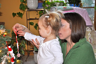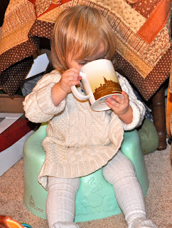 This year, since the girls are so young and won’t know that it doesn’t really work this way, I decided to have Christmas both ways. While at my parents’ house we did Christmas in my family’s tradition. Miss and I made cookies and put some out for Santa on Christmas Eve before she went to bed. We also put out a glass of milk and some carrots for the reindeer. I put her and Lass into their matching Christmas jammies and told her several times that Santa would be coming while she was sleeping. I don’t think she really got it. But the next morning I still showed her the mostly eaten cookies and carrots and told her that Santa and the reindeer had eaten them. She just kept asking to eat what was left herself.