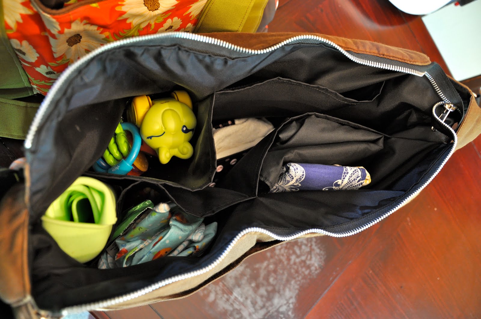 This has been a great bag and I have received tons of compliments on it. It is sturdy and has held up very well to daily use and often over-stuffing with the many things I need to tote around with Miss. However, it has some things about it that annoy me, like this: