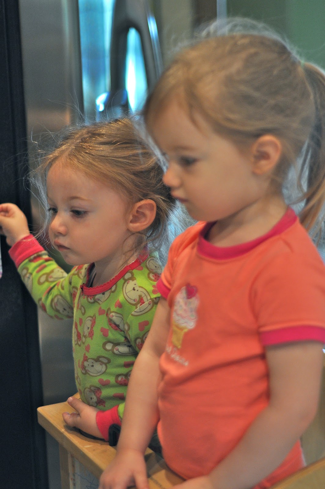 Usually, though certainly not always, they share pretty well too. I bought a two-sided easel (which hasn’t been put together yet) so they could both use it at the same time more easily than the easel on their Learning Tower.