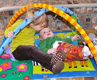We had a nice weekend here. My hubby was on call and had to work all weekend, but we had fun anyway. Yesterday the girls and I went to a local store and cafe where they have lots of toys in a big play area, so Miss had a blast playing with other kids and some different toys. I was a little bit amazed at how long it took me to get ready and get out of the house with two kids, but we made it, only a half hour later than my intended time. And we weren’t meeting anyone, so we weren’t really late, just later than I thought we would get going. We got home just in time for Miss to have a nap. Lass wasn’t tired, so we had some bonding time while Miss slept. We lounged around.