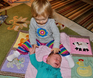 I love to tell my girls about my Grandma B and am excited for Miss to see her again and Lass to meet her in a few months when we go visit her. They have tangible items all around that are constant reminders to me and to them of her. Miss plays with a Raggedy Ann doll that my Grandma made for me when I was little. And my Grandma recently sent Miss a beautiful quilt (to be featured in a future post). There is an afghan crocheted by my Grandma and a pillow embroidered by her in Miss’s room. And Lass has a doll that my Grandma gave me. My Grandma puts love into her stitches, and we can wrap ourselves in it all the time. When we see or hold these things, I tell my girls where they came from.