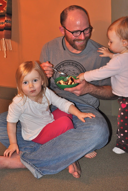 The weather was beautiful and warm, so we got to play outside. The girls loved picking up rocks, examining moss on the ground and playing in the leaves and dirt. Lass may have even eaten a little bit of dirt. But just a little.