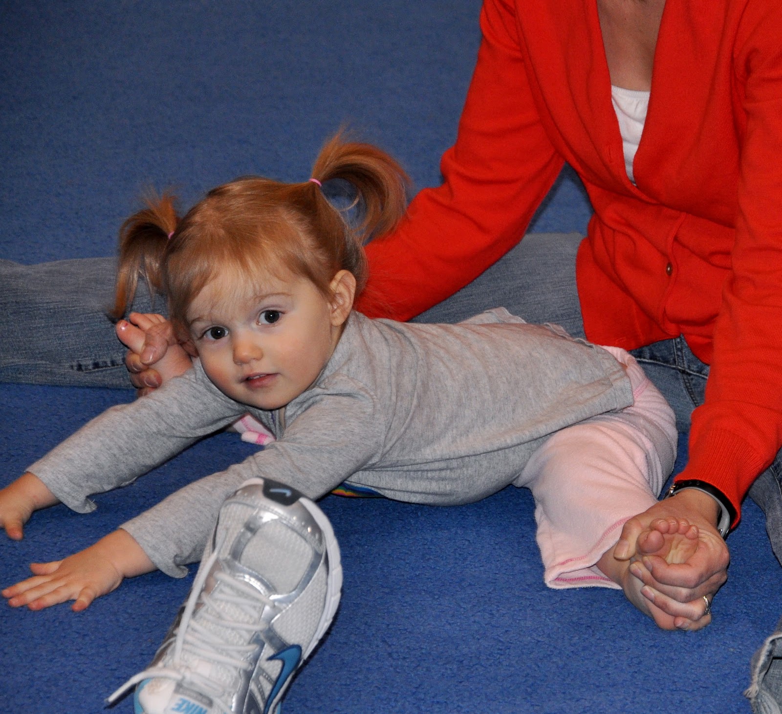 One thing that still makes her a bit nervous is walking the balance bean if it is raised up off the floor at all. But she’s even getting better at that. Today I was so proud of her, because although she was clearly nervous, she did walk the whole length of the beam herself. She did it shuffling her feet in tiny, tiny steps, but she did it. And at the end she jumped off and yelled, “I did it!” It was awesome.