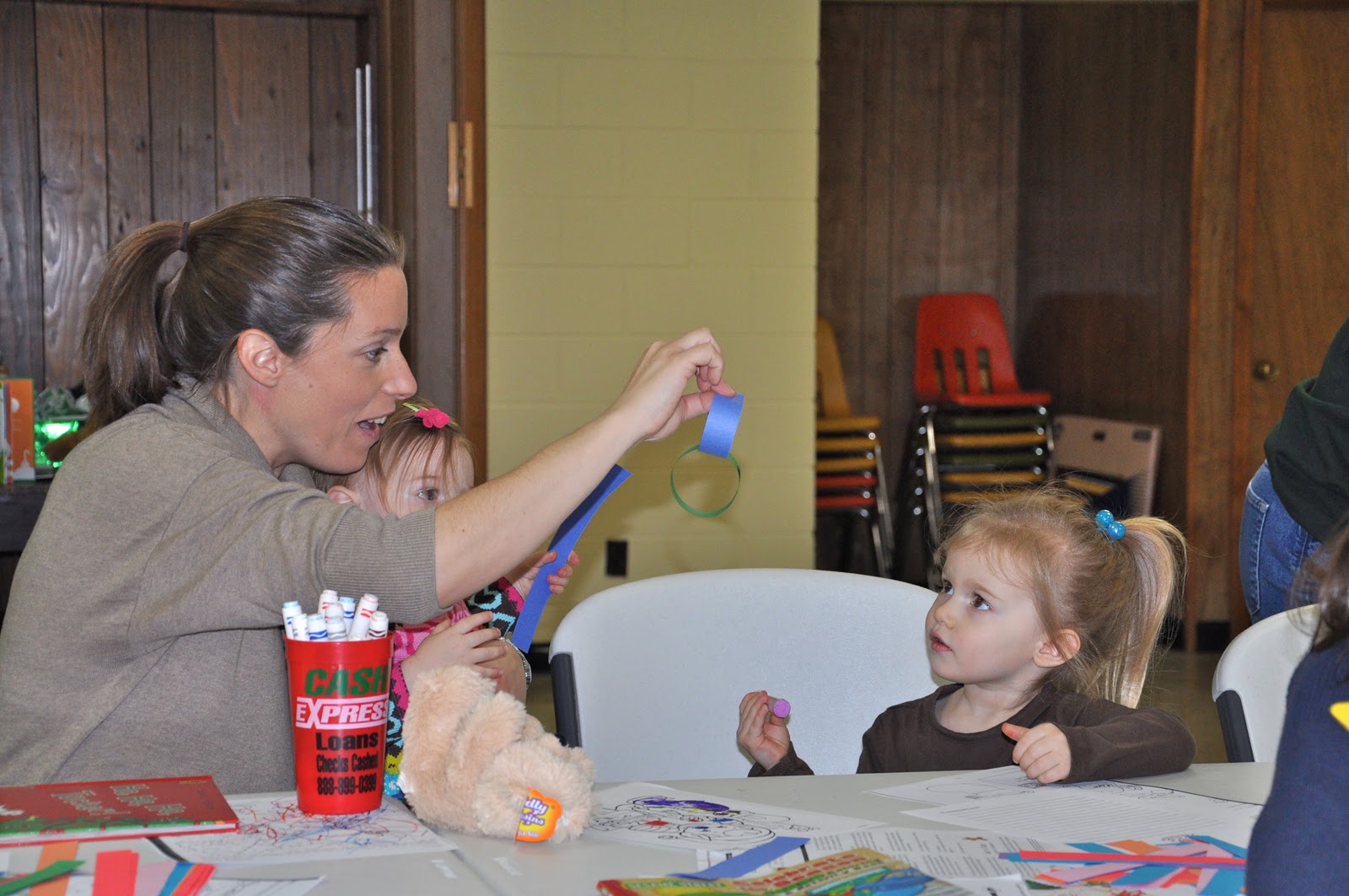 The story time was great. We colored and had a snack and crafted a paper chain.