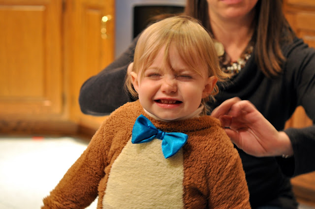 First of all, the issue of costumes almost became a big drama when we first started Halloween planning a few weeks ago. I told the girls that I was not going to buy them costumes for Halloween this year, because they each had gotten two new costumes for the Labor Day party in September. Why two costumes? I had already allowed them to pick a costume for the “Cartoon” theme of the party, and then my Mother-in-law requested that everyone in the family come as a Smurf, knowing that would make for an awesome family photo, so they got additional Smurf costumes.