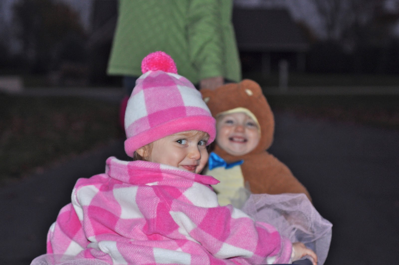 It was really, really cold and the witch hats wouldn’t stay on because of the wind. The houses in our neighborhood are kind of far apart, and there were many with no lights on. We only made it to four houses before calling it quits.