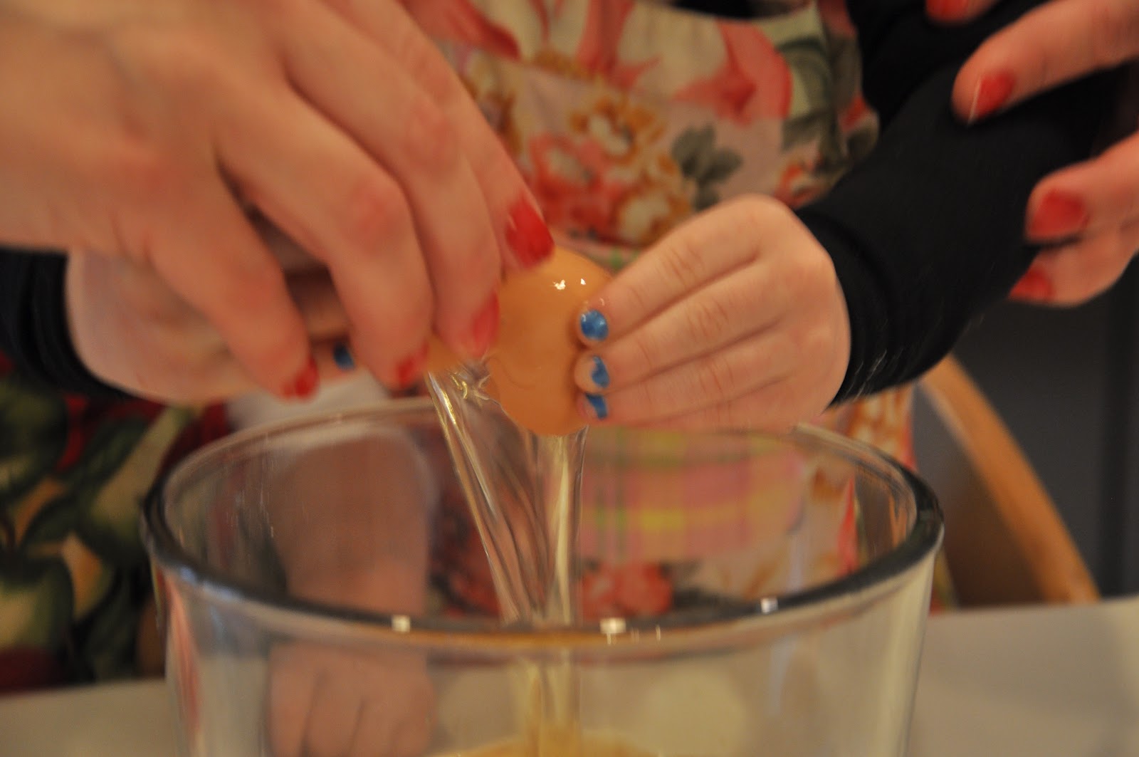 This was her first time cracking eggs.  She loved the feeling of the shell and just kept squeezing and crumbling it.  I had to pry it out of her fingers, very carefully to keep the whole shell from going into the bowl.  I couldn’t stop laughing as she just kept squeezing and squeezing it.