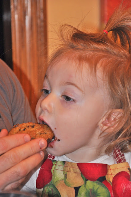 And finally, the chocolate chips get added.  Of course, they have to be sampled first.