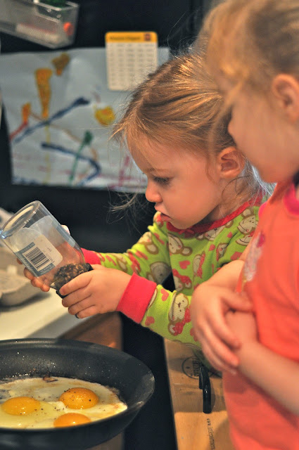 They love helping him cook eggs.  They work the pepper mill and really get into pinching and sprinkling the salt from my salt pig.