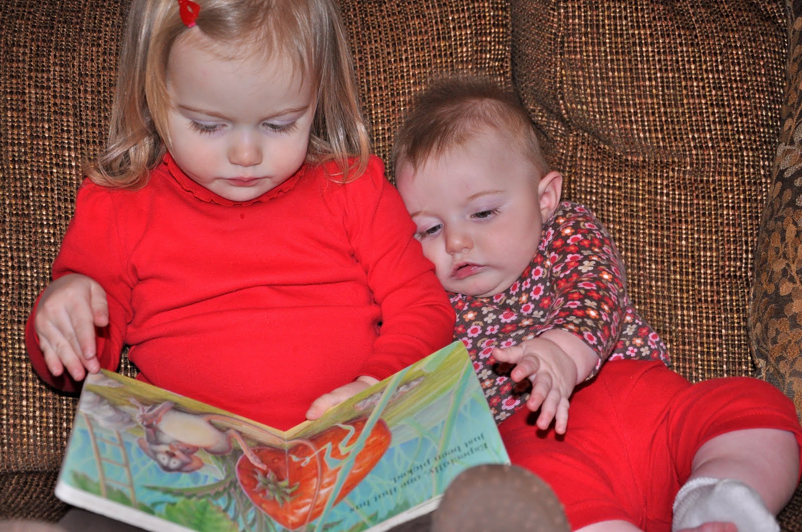 She loves her sister. She likes to get down on the floor near her and give lots of kisses and hugs. She calls her “Sis” and gets very excited when Lass “talks” to or smiles at her. She tells her that she loves her, which just makes me want to press the pause button and savor such moments with my littles.