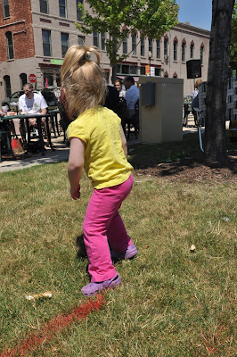 As we were getting loaded up to go to the park I happened to think, “It’s Thursday, I’ll bet I could find a few rummage sales on the way.” So I took a slightly circuitous route to the park to look for some sales along the way. I found two. They were crap. Seriously, the first one had deodorant for sale for 75 cents. Deodorant! 75 cents! So wrong. I didn’t look any further because I wanted the girls to have plenty of time at the park before lunch. We went to a new park today and Miss had a blast checking out all the new stuff there.