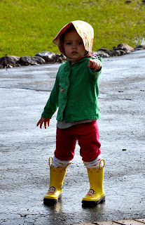 We came home to get dry clothes, eat lunch and take naps, and then went back to the beautiful day outside. We took a walk, which was very short because Miss requested to walk by herself instead of riding in the stroller. As she was walking she went onto a neighbor’s lawn and started to take her shoes off. I told her she needed to keep them on while we were walking and she informed me that she wanted to feel the grass under her feet. All right. She agreed to keep her shoes on until we were in our own yard, and then we all promptly took off our shoes to feel the tickle of the grass under our feet. Lass got a big kick out of this. Miss and I danced and shuffled our feet. This resulted in some heckling from my hubby who was inside changing clothes after work. The heckling resulted in a dazzling display of the Running Man by yours truly. The evening was topped off by grilled homemade brats, football on the telly, and very soon, ice cream. I love days like today. My spoon is calling me.