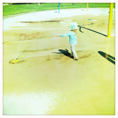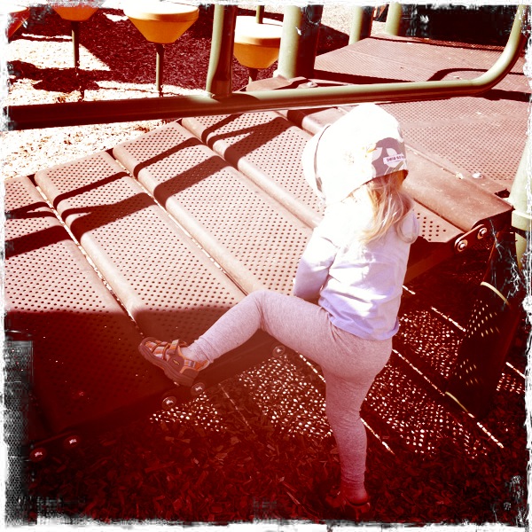As we were getting loaded up to go to the park I happened to think, “It’s Thursday, I’ll bet I could find a few rummage sales on the way.” So I took a slightly circuitous route to the park to look for some sales along the way. I found two. They were crap. Seriously, the first one had deodorant for sale for 75 cents. Deodorant! 75 cents! So wrong. I didn’t look any further because I wanted the girls to have plenty of time at the park before lunch. We went to a new park today and Miss had a blast checking out all the new stuff there.