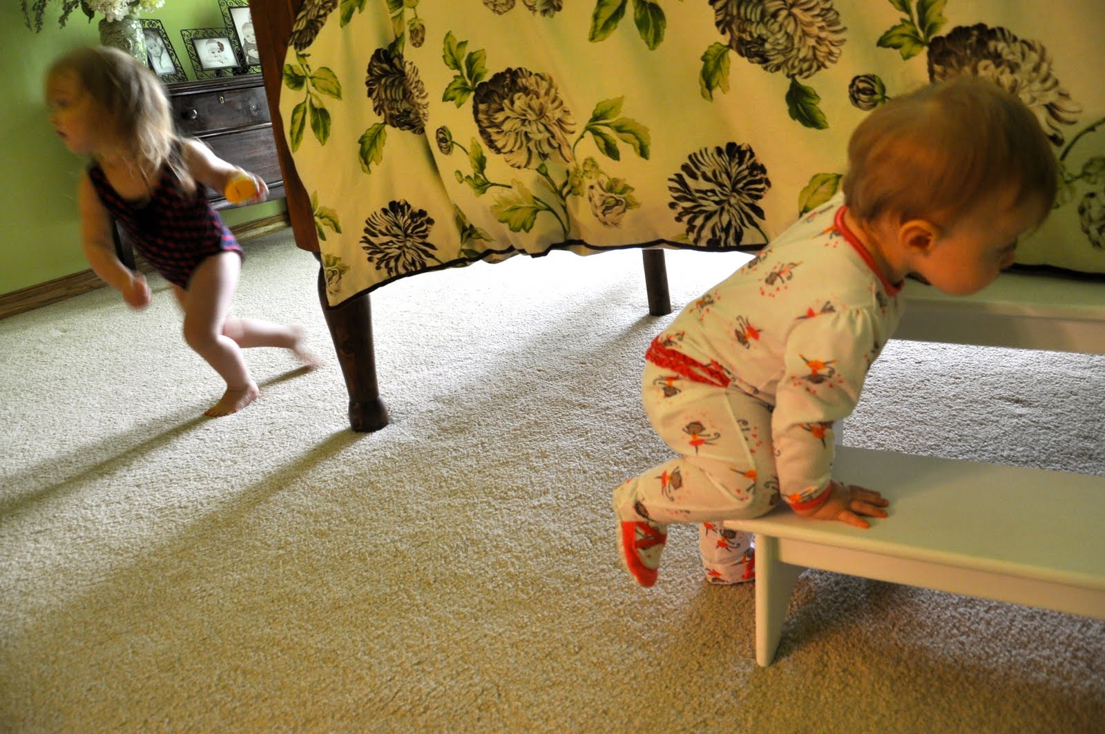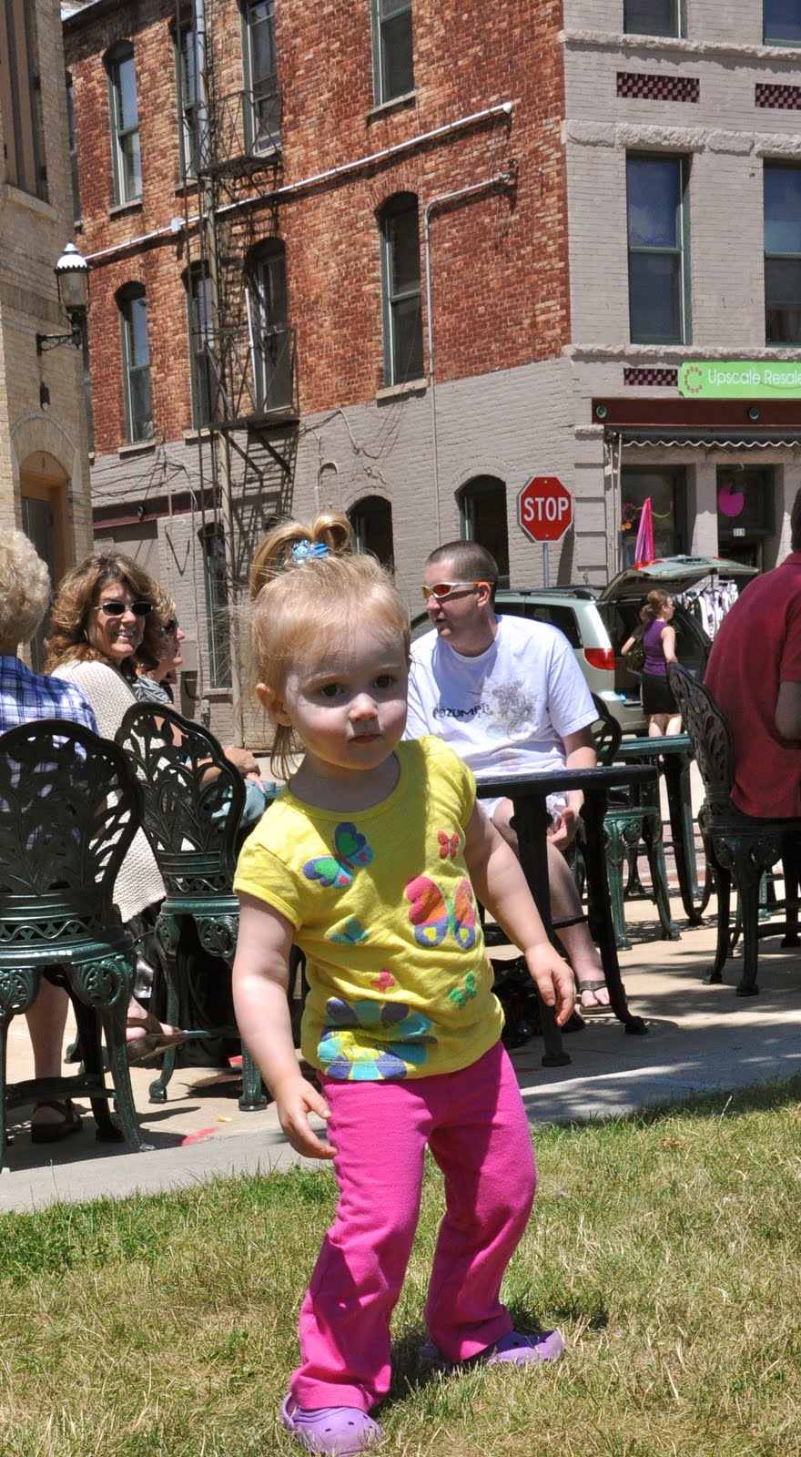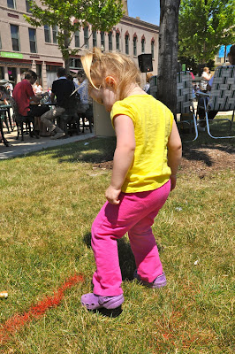 We came home to get dry clothes, eat lunch and take naps, and then went back to the beautiful day outside. We took a walk, which was very short because Miss requested to walk by herself instead of riding in the stroller. As she was walking she went onto a neighbor’s lawn and started to take her shoes off. I told her she needed to keep them on while we were walking and she informed me that she wanted to feel the grass under her feet. All right. She agreed to keep her shoes on until we were in our own yard, and then we all promptly took off our shoes to feel the tickle of the grass under our feet. Lass got a big kick out of this. Miss and I danced and shuffled our feet. This resulted in some heckling from my hubby who was inside changing clothes after work. The heckling resulted in a dazzling display of the Running Man by yours truly. The evening was topped off by grilled homemade brats, football on the telly, and very soon, ice cream. I love days like today. My spoon is calling me.