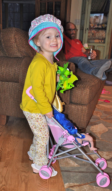 When I insist that she wear real clothes, she doesn’t usually have too much of an opinion about what she wears. Sometimes she’ll insist on a particular pair of socks, which never match the rest of her outfit. Sometimes she just requests or picks something blue, which is her favorite color right now. Sometimes she asks to wear a “pretty dress,” mostly just because she likes to wear tights, I think.