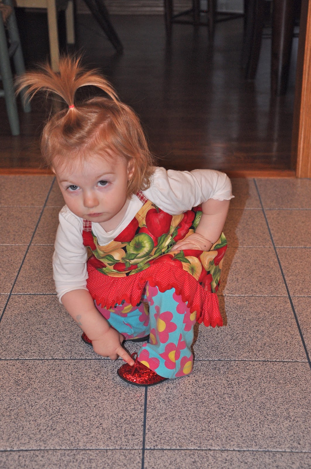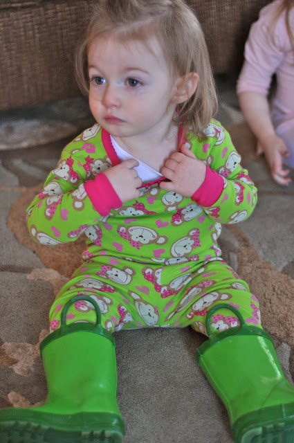 When I insist that she wear real clothes, she doesn’t usually have too much of an opinion about what she wears. Sometimes she’ll insist on a particular pair of socks, which never match the rest of her outfit. Sometimes she just requests or picks something blue, which is her favorite color right now. Sometimes she asks to wear a “pretty dress,” mostly just because she likes to wear tights, I think.
