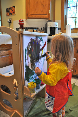 Miss sure does love to paint. And I sure do love to watch her. I was really impressed by this face she painted a few days ago.