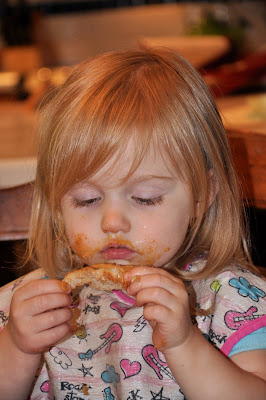 And after she had eaten just the good stuff off the top of the bread, she requested more, and more as the bread got more and more soggy and hole-y.
