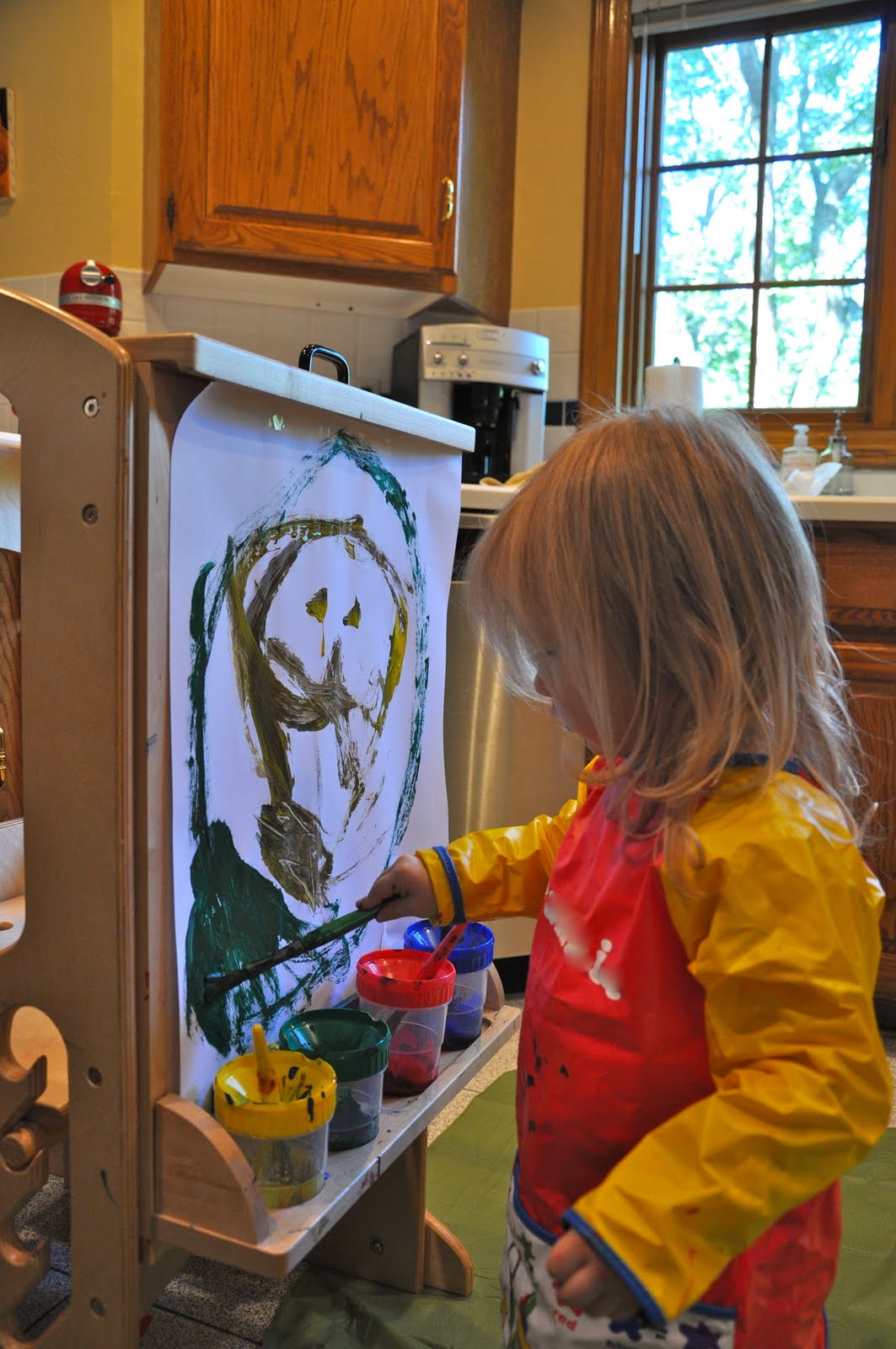 Miss sure does love to paint. And I sure do love to watch her. I was really impressed by this face she painted a few days ago.