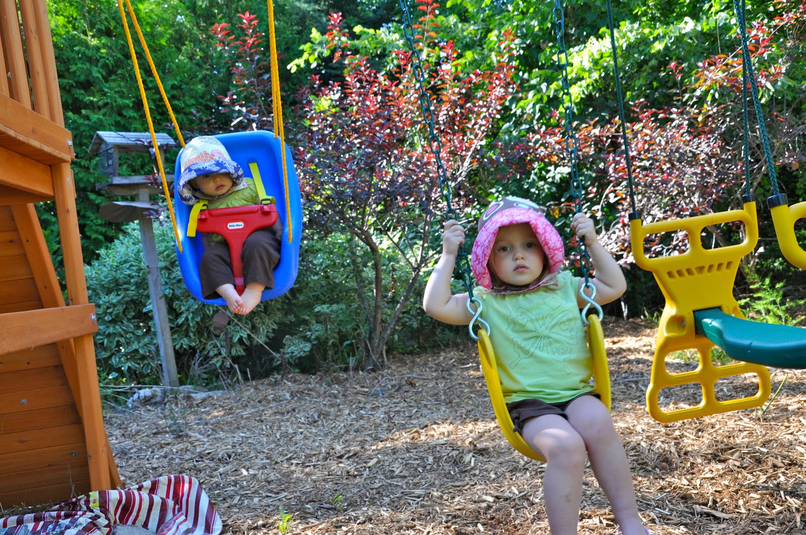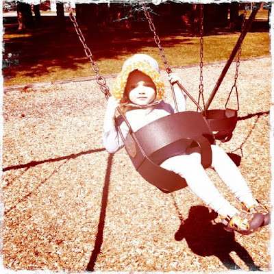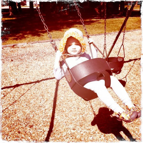A little later, Miss was very eager to ride the Big Yellow Slide. We happened to eat lunch right near it, and she couldn’t even eat she was so anxious to get on that slide. She was mad that she couldn’t go down by herself. She went down with her daddy. And she hated it. It totally freaked her out. Lass on the other hand loved it. She went twice and wanted to keep going.