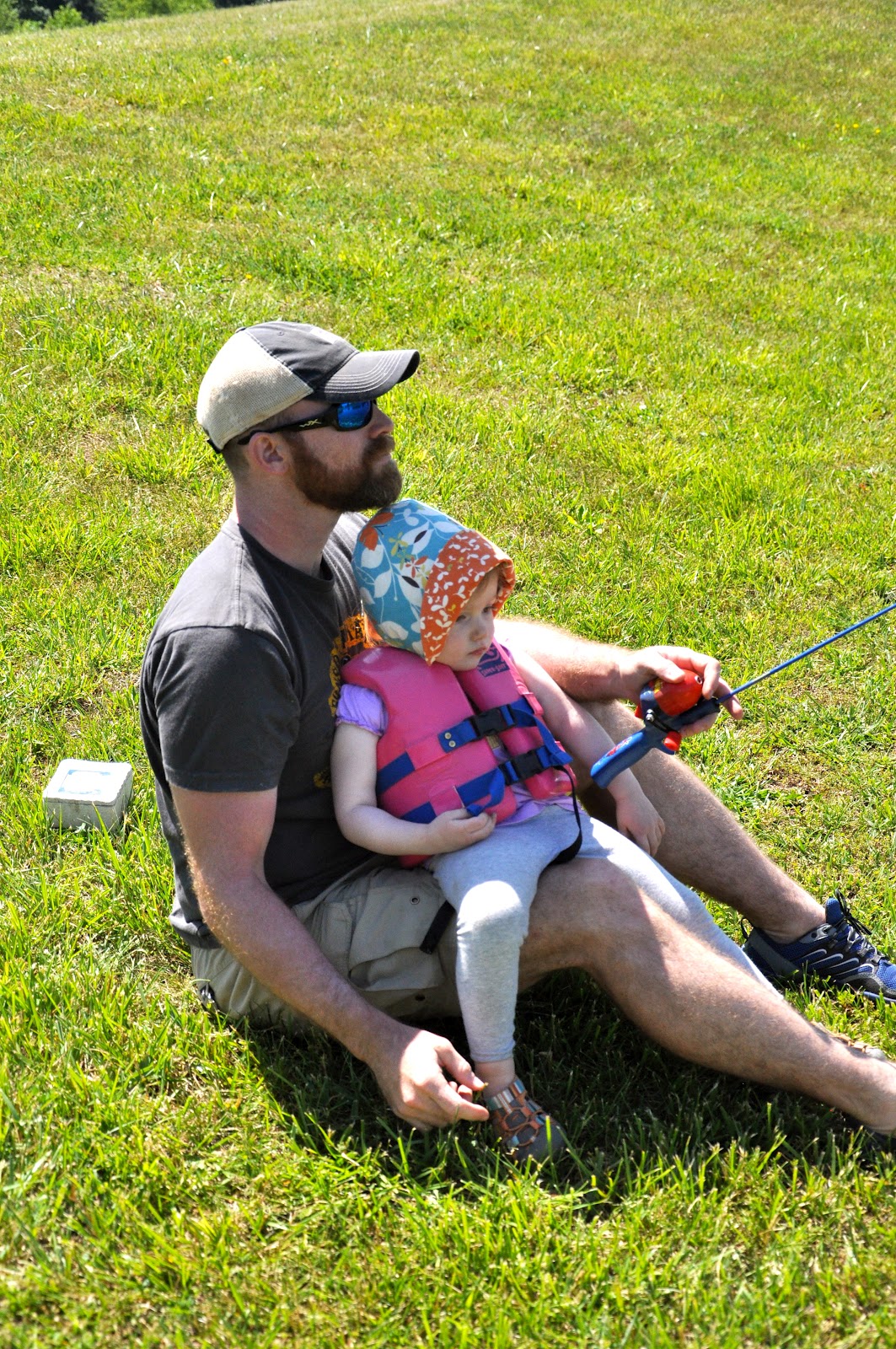 Of course after our ride it was time to go fishing.  Miss had been talking about fishing with her Daddy for weeks before this trip.  She caught some bluegills, which she called “blue jays” when I asked her what kind she had caught.