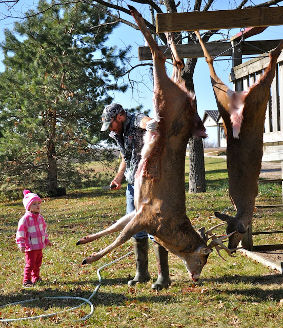 She got to check out lots of interesting things, like this deer rub.