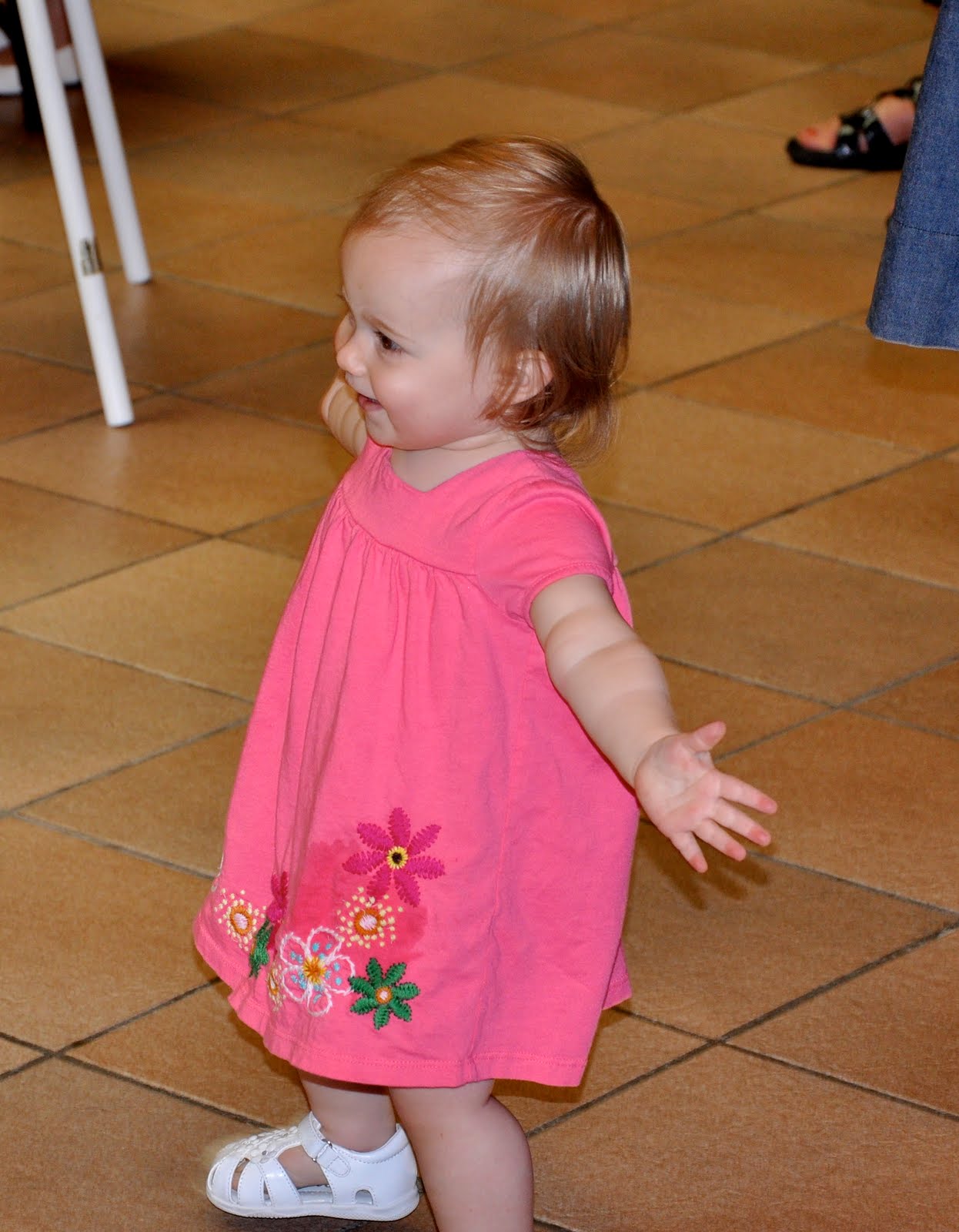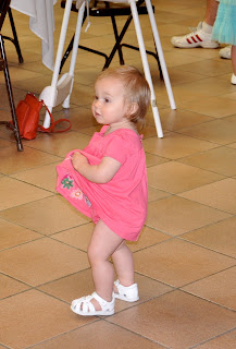 Both bags have plenty of outer storage space, plus lots of pockets inside. My old bag had four interior pockets, which was great, except that I ended up without a good place to store my “mommy stuff” (lip balm, Tums, etc.), so I just threw it in the same pocket with the snacks/sippy cup, etc. Here’s a photo of the old bag, containing toys, a changing pad, a bonnet, one cloth diaper, some food, diaper cleanup stuff, and Miss’s