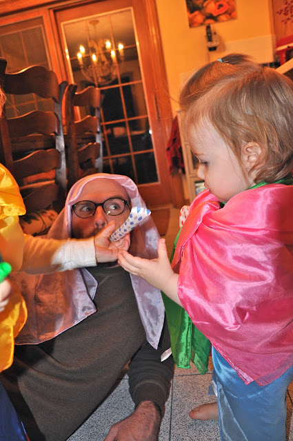 The birthday was a wonderful success, right up until the very end. Just as I was getting ready to take Sis upstairs to put her to bed, Lass threw up all over her new dress and the kitchen floor. Chaos ensued briefly, but we managed to get Lass a bath and all three girls to bed fairly quickly after that. The birthday girl did sleep all night, though she woke up still feeling pretty yucky this morning.