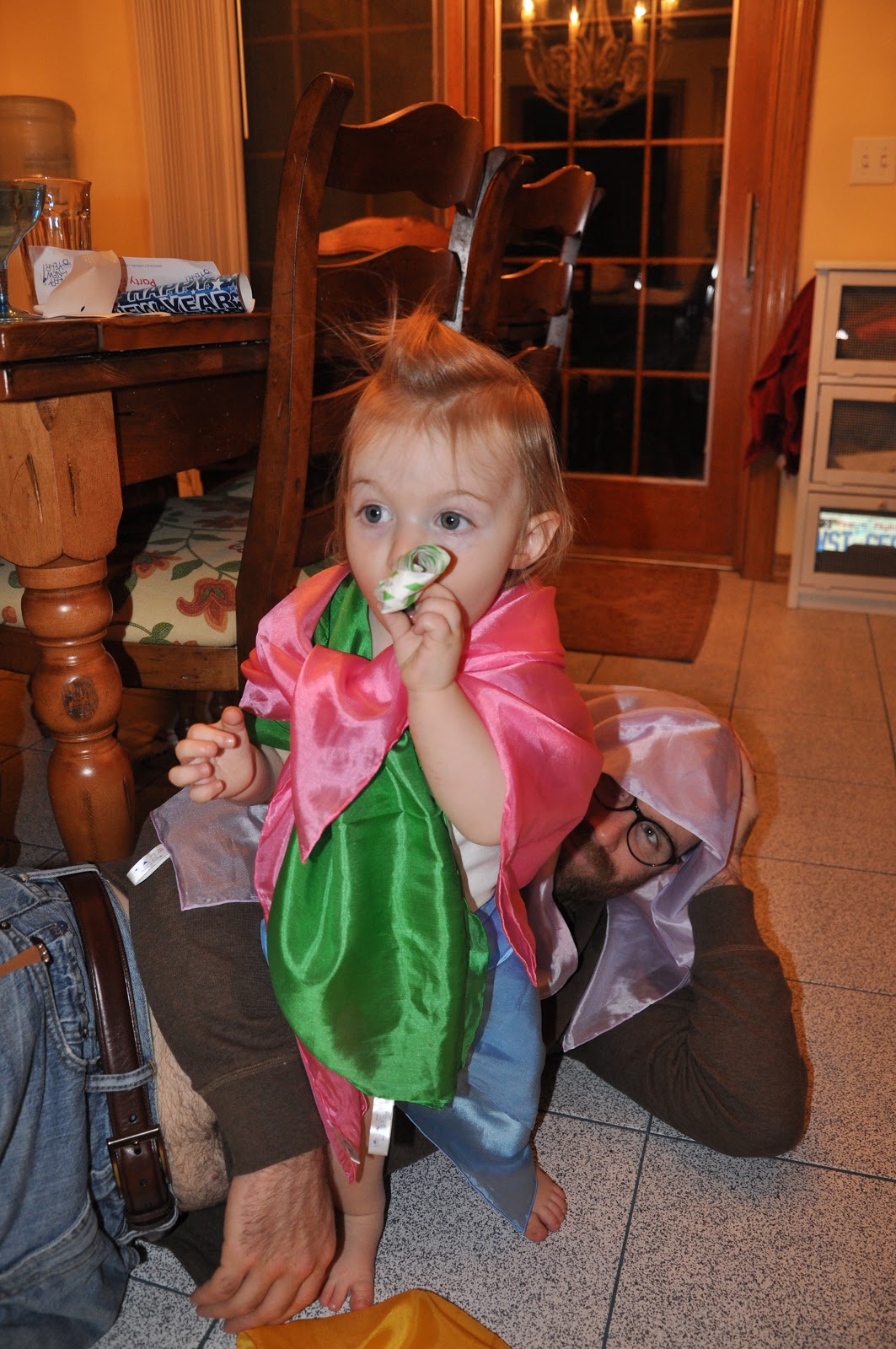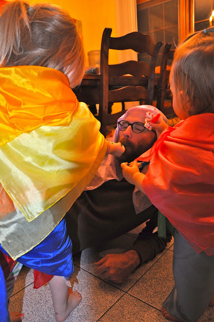 The birthday was a wonderful success, right up until the very end. Just as I was getting ready to take Sis upstairs to put her to bed, Lass threw up all over her new dress and the kitchen floor. Chaos ensued briefly, but we managed to get Lass a bath and all three girls to bed fairly quickly after that. The birthday girl did sleep all night, though she woke up still feeling pretty yucky this morning.