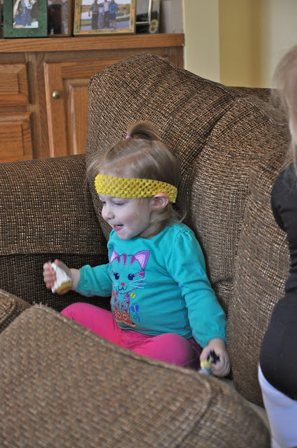 Sis enjoyed watching all the festivities and laughed at her sisters playing.