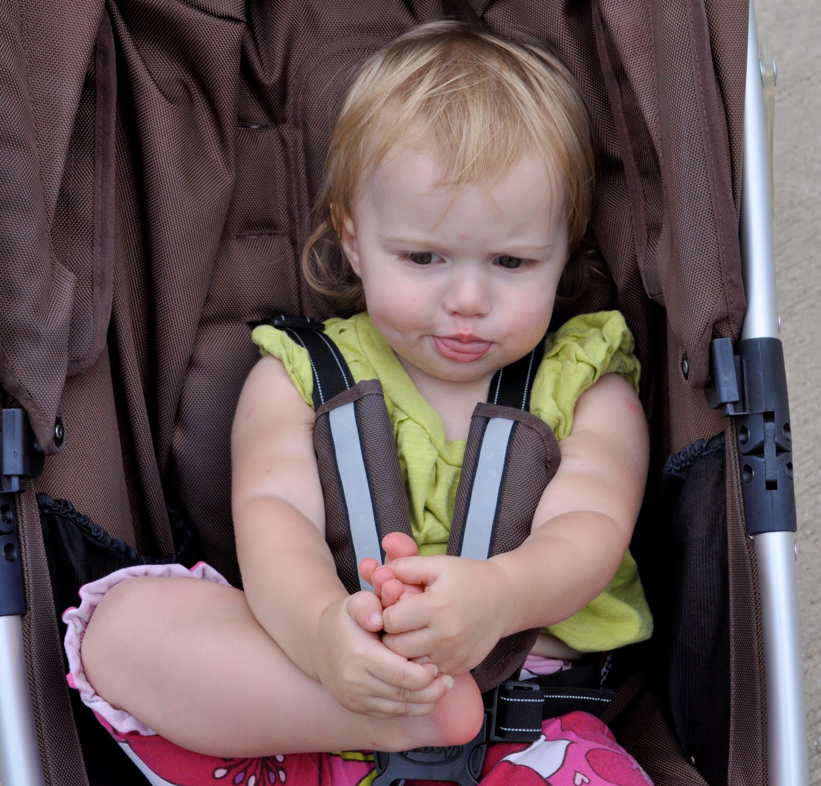 She totally loves planes and says “Pay!” and points up anytime she hears one. She had a great time at the air show today. Here she is dancing around a bit as we were sitting and watching planes take off for a while.
