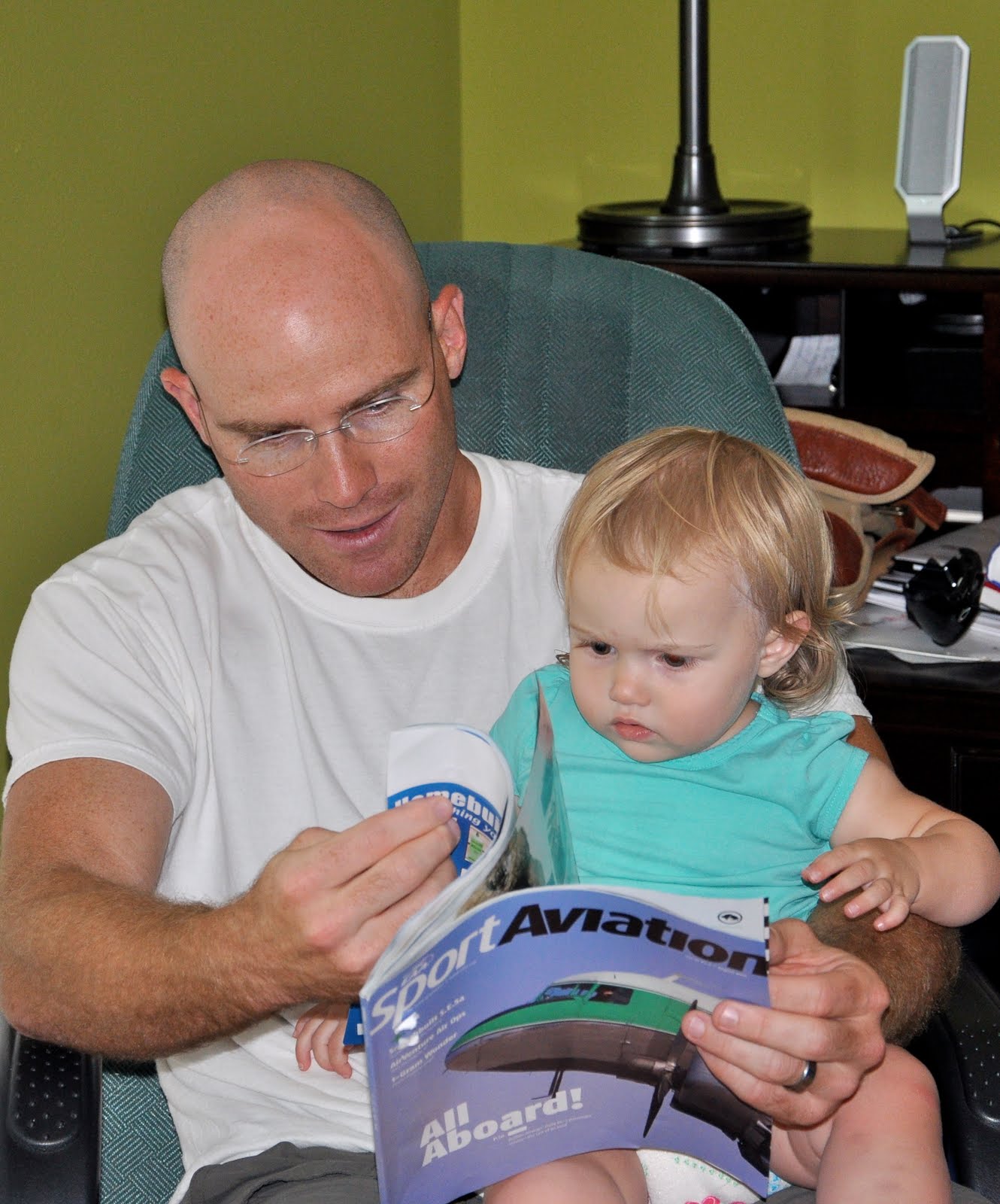 And today we went to the air show here in town. It’s the second largest air show in the world. We’ve lived here for two years but I’ve never made it to the show. This year, we just had to take Miss. See, she has a bit of a fascination with planes. She could spend hours siting on her Daddy’s lap looking at pictures of planes in magazines or watching videos of planes flying on his computer. This is how I found them the other day after he came home from work: