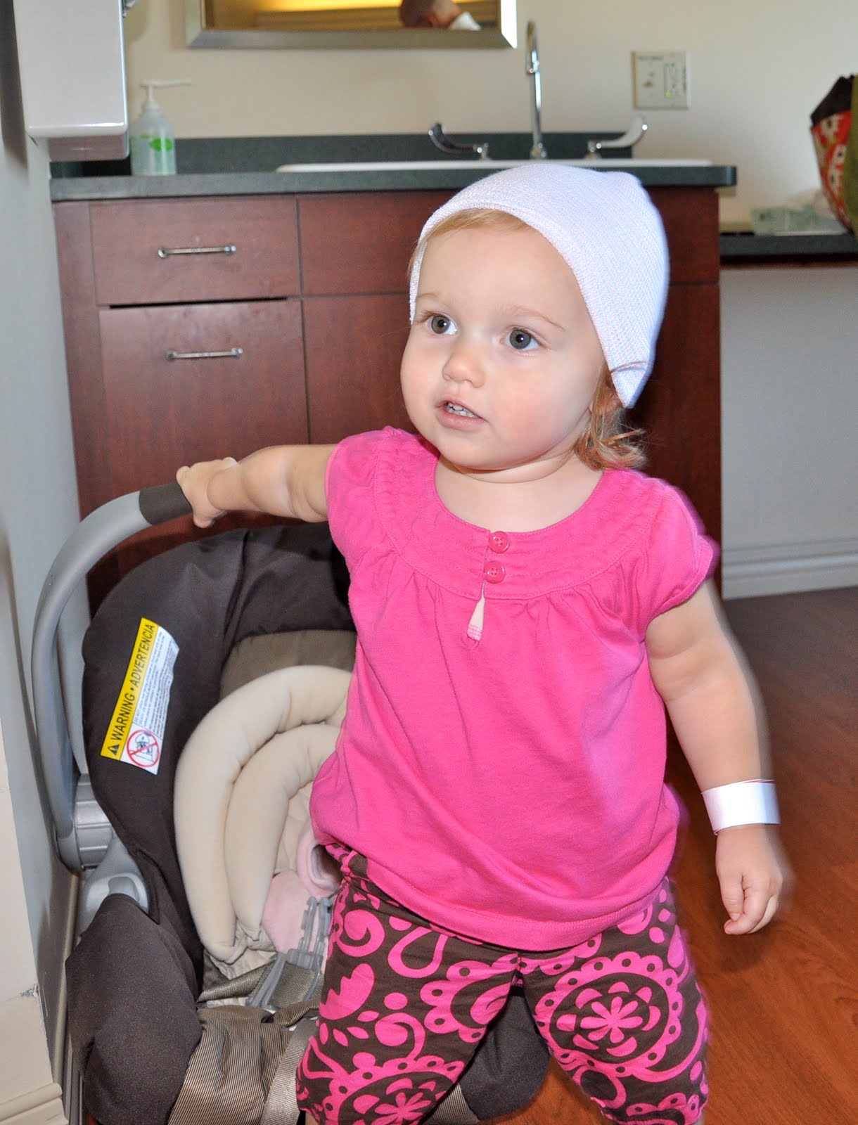 Miss also insisted on wearing her baby sister’s hat. She pranced around very proudly once she got Grandma to put it on.