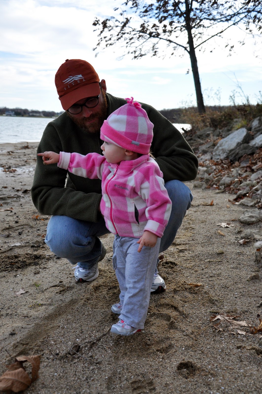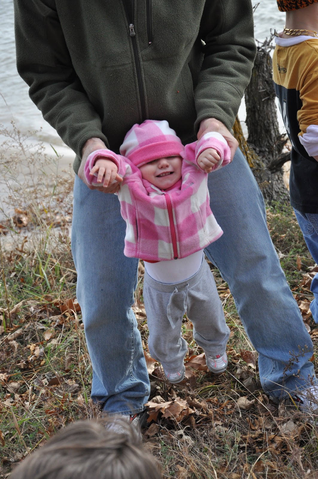 Taking my girls outside and to other places to experience things hands on is the best thing ever. This week Miss has found walnuts and acorns, some whole and some eaten by squirrels. She has gotten to hold some cool fossils that have been found here (in case you’re wondering, we’re at the Farm for deer hunting). She has seen lots of deer running, some bucks chasing does. She has seen an almost completely eaten squirrel (she said, “Yuck”). She has held deer antlers. Lass has filled and dumped the bowl of gourds over and over. She has picked up rocks and sticks, and both girls have sat and jumped in leaves. With each of these experiences, we have talked to the girls about what they are seeing. Miss asks questions. Their time here and in other places where they can see and touch and play with the things around them provide such rich learning experiences.