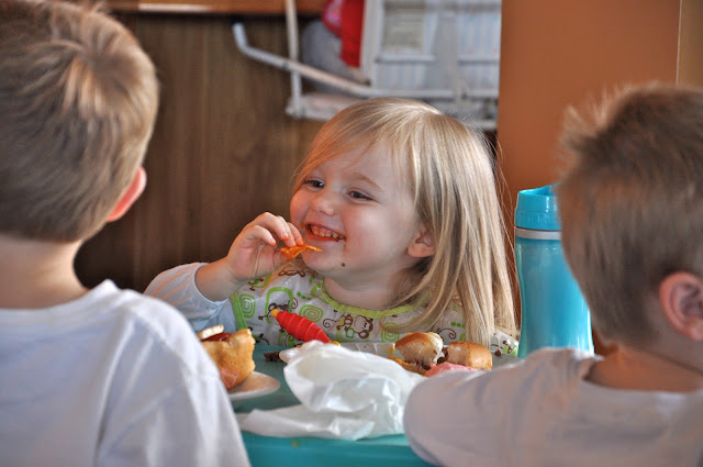 And we spent a lot of time just playing. Miss had fun with this guitar one afternoon. She has really been into singing lately, often making up her own songs. The other day she started strumming the guitar and singing a song that went something like, “Mommy and Lass and Daddy and Miiiiissss. You’re so cuuuute and so adoooorable.”