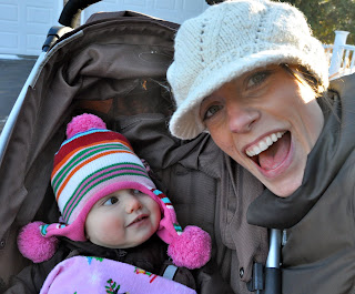 She looks so cute all bundled in the stroller! And I love her pants. WE are doing the ready for spring dance too, it was 40 yesterday so we went for a walk! Enjoy the sun!