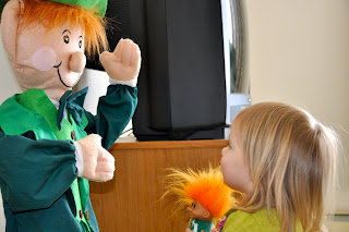 Somehow I forgot to post the photos from our brief visit to my husband’s grandmother last Friday. We drove out Thursday night, stayed in a hotel, and then were able to visit for a few hours Friday morning before driving home that evening. It was a short but very fulfilling trip. Miss was a bit shy to start, but got warmed up by greeting her Great-Grandma’s leprechaun statue-doll thing.